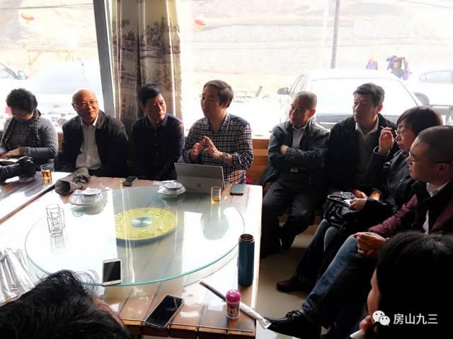 考察活动结束后,召开了座谈会。为了加快中药材产业的发展,会议特邀房山区致公党成员、广阳博海中医院院长张海滨博士参与。大家畅所欲言,集思广议。万金峰首先向大家介绍了“药王谷”项目的建立、发展过程。屠鹏飞、魏胜利分别就“药王谷”建设项目给出可行化建议,希望结合当地旅游及文化资源,明确发展定位,进而整体规划,打造集医疗、养生、旅游、体验、培训、影视、种植基地多功能为一体的多层级全产业链项目。建议从中草药种植基地旅游观光、中草药药膳品鉴、建立鲜药温室大棚种植、建立中医药博物馆、与高校合作提供大学生创业、实习基地等方式进行有效切入,进一步推进“药王谷”建设项目。最后大家还就如何实现产业落地问题,展开了深入讨论,从资本介入,运营团队,产品推广等角度建言献策。刘琼表示刚刚成立的房山区工委一定会尽全力推进药王谷建设项目,借助社内资源,调动区工委广大社员的积极性,实现科技助农,脱贫攻坚,助力两地特色小镇建设。
