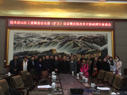 2018年12月28日,民革房山区工委筹委会召开全委(扩大)会议,传达民革北京市委第十五届委员会第三次会议和中共房山区委八届八次全体会议精神并召开庆祝改革开放40周年座谈会。区政协原副主席、民革老主委赵润东出席并讲话。