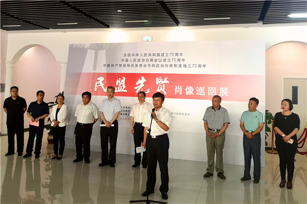 6月24日,民盟北京市委庆祝中华人民共和国成立70周年——民盟先贤肖像巡回展在房山区文化活动中心举行启动仪式。本次展览由民盟北京市委主办,中共房山区委统战部、民盟北京市委书画家联谊会协办,民盟房山区总支,房山区文化活动中心承办,是民盟先贤肖像巡回展的第七站。