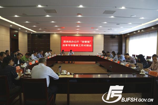 会上,督查组传达了李克强总理关于“放管服”改革和此次专项督查重要指示批示精神,介绍了专项督查要求和主要安排。会议听取了房山区关于落实“放管服”改革政策措施总体情况的汇报。