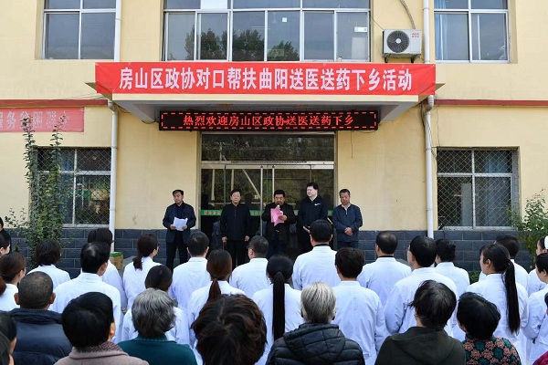 在活动仪式上,曲阳县政府副县长徐路生代表县委、县政府对房山区的真诚帮助和关爱表示衷心的感谢,对各位医疗专家不辞辛苦深入山区送医送药上门的义举和大爱情怀表示敬意,并表示在房山区委区政府及区政协的关怀支持下,曲阳县上下一心,同心协力,一定能打赢脱贫攻坚战。