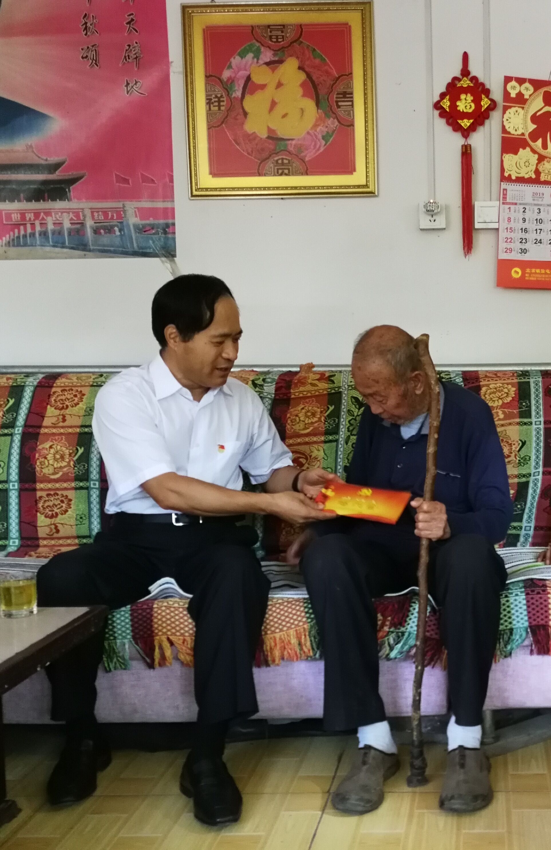 根据中央和市、区委有关精神,在中华人民共和国成立70周年之际,9月24日,区政协常务副主席吕守军带队前往青龙湖镇和行宫园小区走访慰问建国前老党员和老干部,为他们送去慰问品和慰问金。