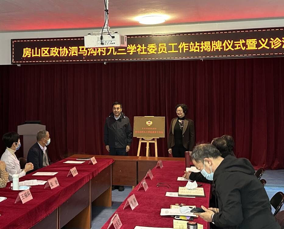 近日,按照《2022年区政协委员工作站建设工作方案》的总体安排,为进一步加强和改进委员联系群众工作,泗马沟村九三学社委员工作站在周口店镇泗马沟村举行了揭牌仪式。九三学社社员围绕中共二十大精神开展了学习与交流,并为泗马沟村村民开展了义诊活动。区政协常务副主席王永年,区政协副主席、九三学社区工委主任刘琼,区政协秘书长王文洪及九三学社区工委的医疗专家和部分社员出席活动,周口店镇相关负责同志参加活动。