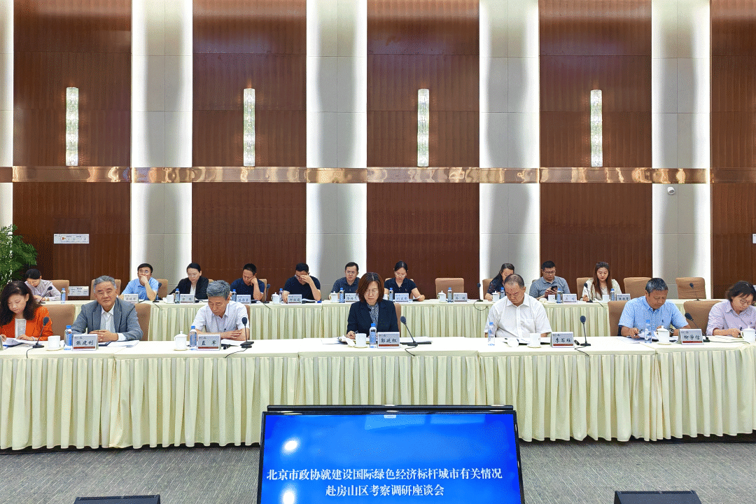 近日,市政协副主席郭延红带领市政协联合调研组就“加快建设国际绿色经济标杆城市,提升绿色经济国际影响力”议题赴房山区调研,并召开座谈会。市政协经济委副主任李石柱,房山区政协主席魏广勋,副区长高武军,区政协一级巡视员王永年,副主席杨冬立,秘书长汤连成,联合调研组部分成员、民主党派成员和有关专家学者参加。