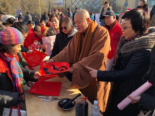 活动现场主要分为文艺表演、新春送福、清真食品展卖、志愿服务、政策宣传五个区域。委员们挥笔送“福”,受到社区居民热烈欢迎。